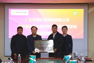随后举行的专题座谈会上,双方围绕新材料领域的前沿趋势、关键技术突破及高素质创新人才培养进行了深度对话。为将合作推向纵深,现场举行了隆重的签约与授牌仪式:学院与邦固化学正式签订校企合作协议,并共同为“实践教学基地”与“产学研合作基地”揭牌。这不仅标志着双方在协同育人、资源共享方面建立了稳固的战略纽带,更是学院主动对接区域重点产业平台、服务地方发展的重要体现。双方合作的韶关市科技项目《高性能环保型柔印冷烫高分子功能材料配方设计及工艺开发项目》,正是学院科技赋能广东省“百千万工程”建设、助力区域产业升级的具体实践。